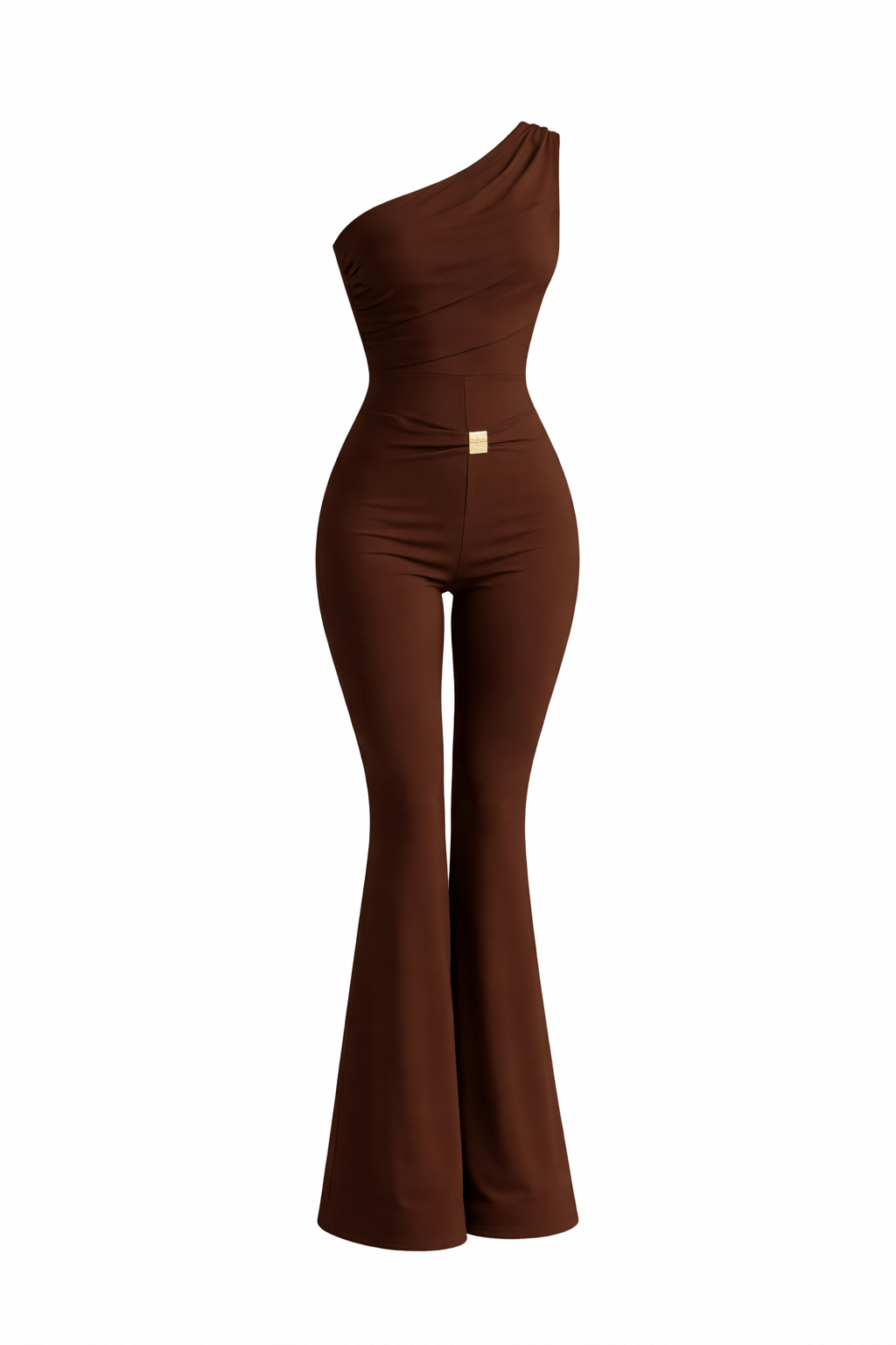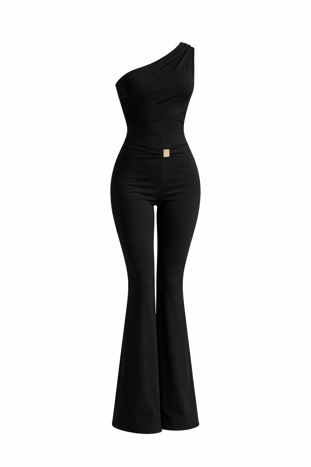 Este mono combina elegancia contemporánea y sofisticación en un diseño limpio y favorecedor. Su silueta entallada estiliza la figura con precisión, mientras que el corte asimétrico de un solo hombro aporta un toque moderno y distintivo. El color negro realza su carácter atemporal, convirtiéndolo en una pieza clave para looks elegantes y versátiles.
